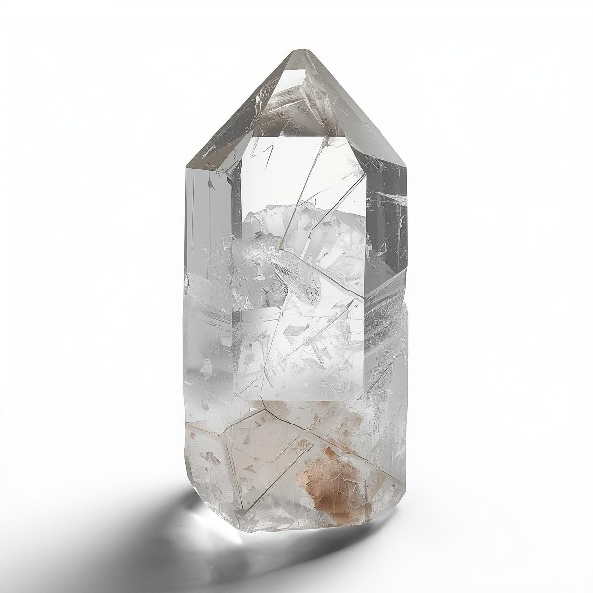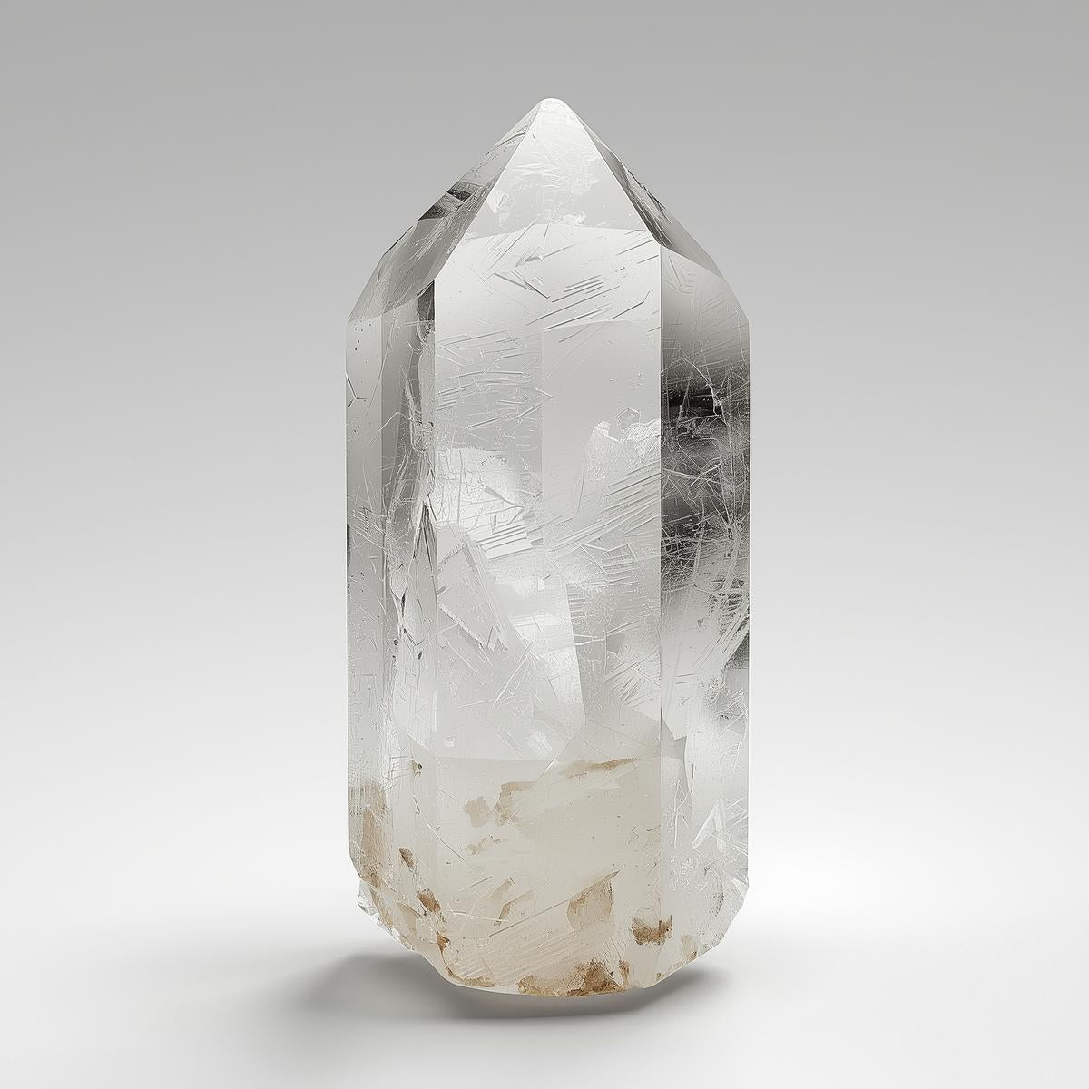 透明石英因其卓越的透明度、多功能性以及在各个层面协调能量的能力,常被称为“水晶之王”。作为石英家族的核心成员,透明石英主要由二氧化硅构成,天然形成六棱柱结构。其透明的外观,常伴有精致的内部纹理和冰状裂纹,体现了它作为一种强大而中性的能量媒介的特性。